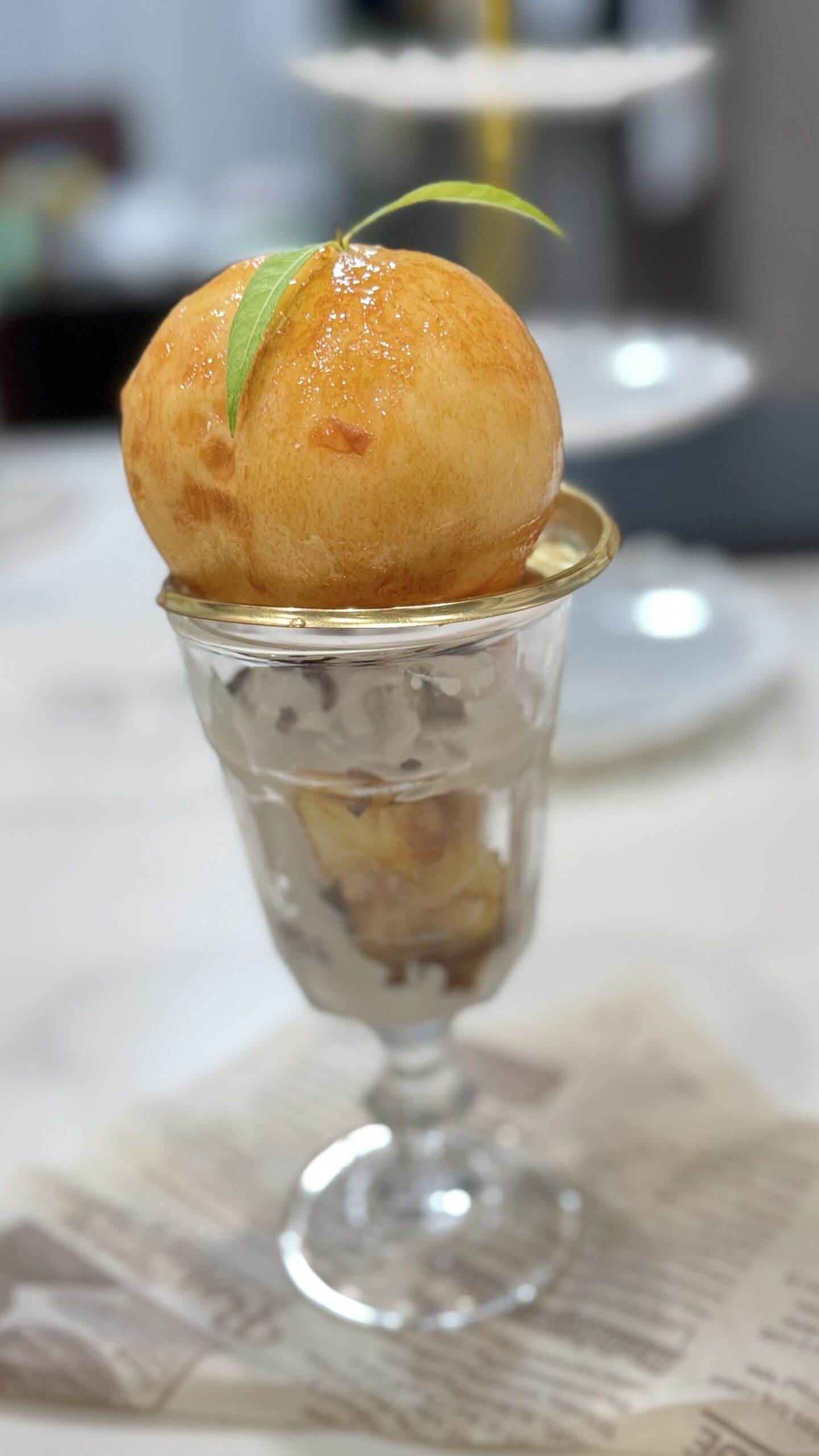 まるごと1個の桃に、植物性のクリームをたっぷり詰め込んで、